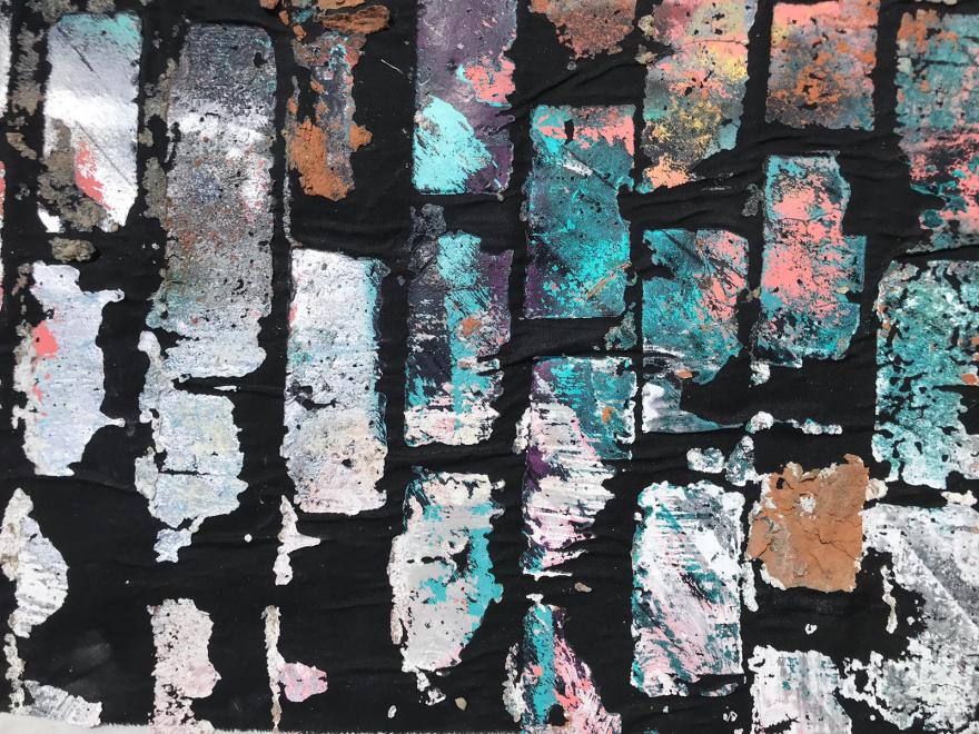 Opera realizzata con Philip Kron Morelli, pittura murale srappata, cm 140×150, 2019.