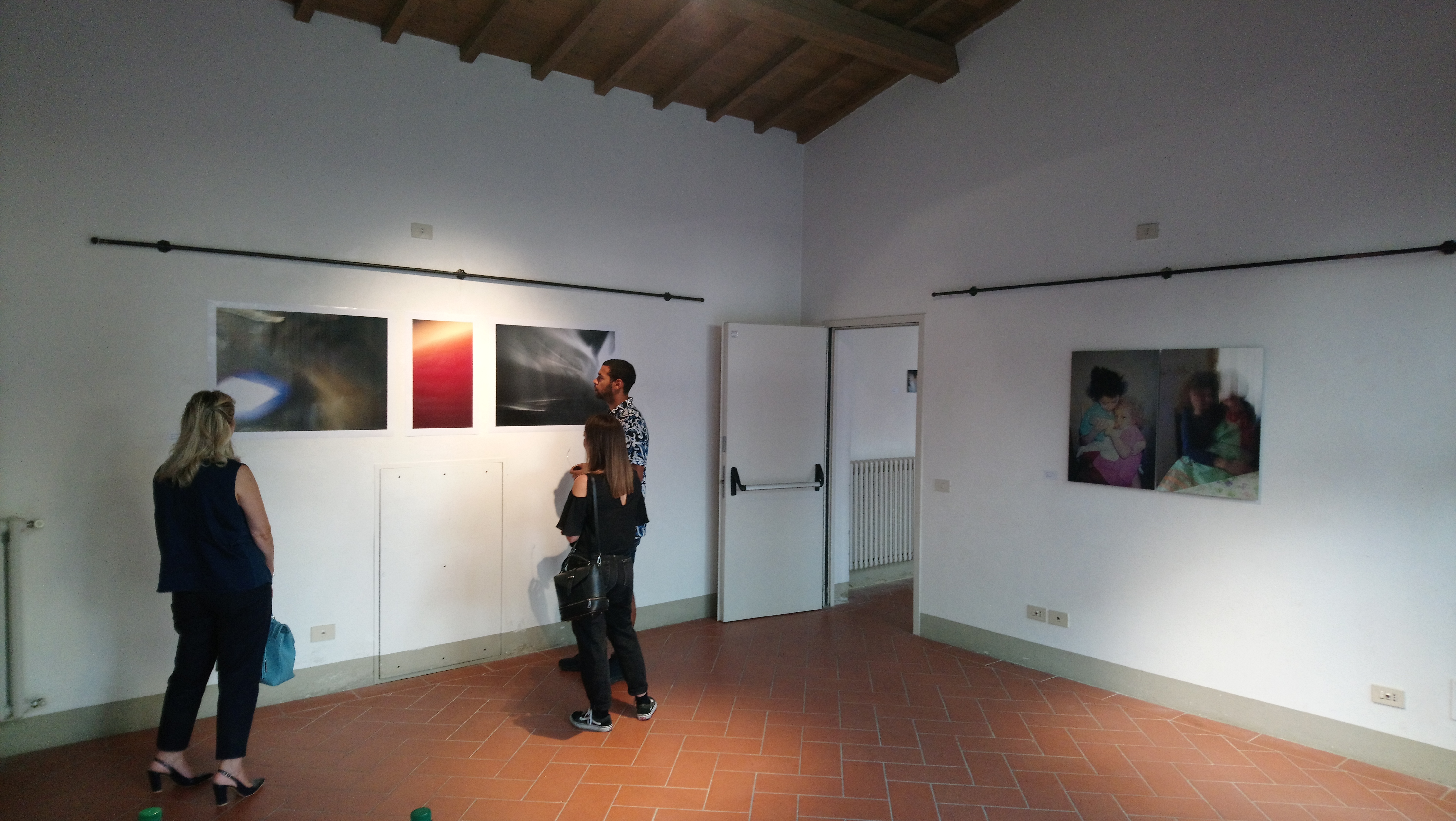 Durante la mostra “Sfocature-L’errore voluto della macchina”, Limonaia di Villa Vogel, Firenze, 2018.